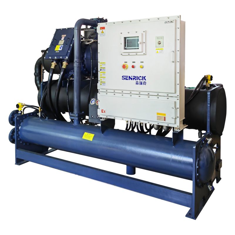 防爆冷水機具備哪些特點?     防爆冷水機經常應用于易燃易爆等特種場所,使用它可以防止發生機械爆炸。那么防爆冷水機具備哪些特點呢?一點,它采用雙螺桿壓縮機,擁有很好的節能效果;二點,機組采用PLC控制技術,可以實現一鍵開機,操作比較方便;第三點,機組提供從制冷劑系統,電系統到水系統的完備保護,具備很好的安quan性。
